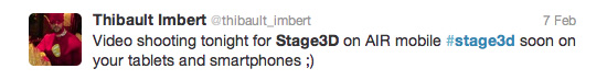 It's great to see the enhancements of the Stage3D enriched experiences on desktop, and certainly the opportunities will even further grow once it arrives on mobile devices. And who knows, it might be soon - at least if you follow Adobe's product manager Thibault Imbert's twitter.