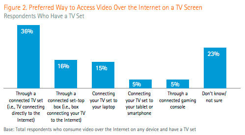 Very true. Let's look at some of the data. Smart TVs, as well as set-top boxes, are clearly dominating as a preferred way to access internet video on TV.