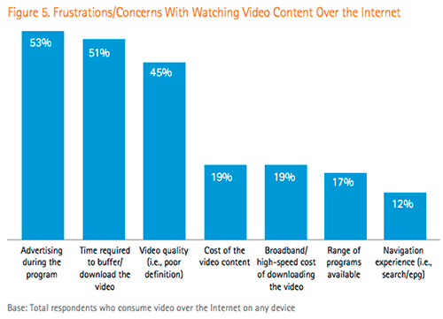 Advertisement and cost of video content are slightly contradicting issues (advertisement often eliminates the viewer costs, while paid content mostly doesn't include ads), but the top issues can be addressed by initiatives like Project Primetime. Ads often can't be avoided, but improving the video and playback experience adds clear value. Not surprisingly, the survey also indicates that free is the preferred way to consume content.