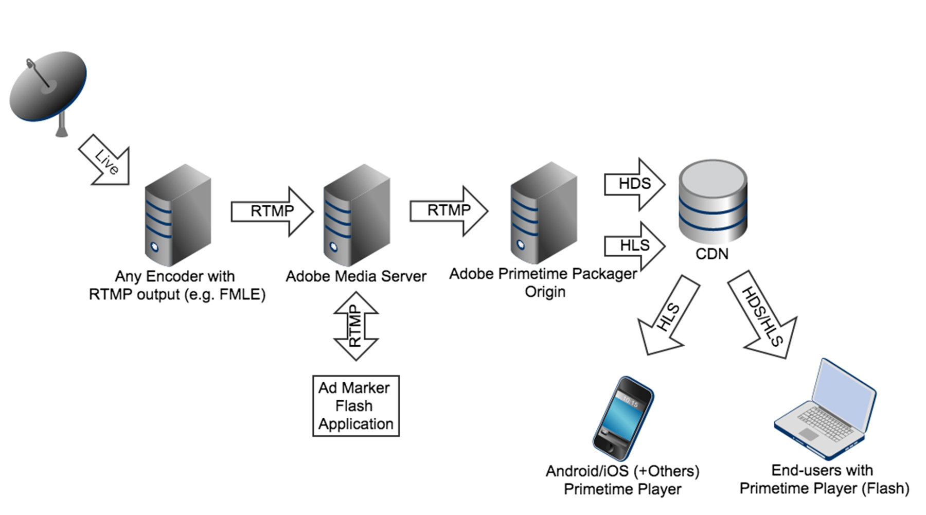 In addition, if content protection or DRM is required, the Adobe Primetime Packager can easily enable it for both HDS and HLS, and the Adobe Primetime Player has the necessary DRM components embedded.