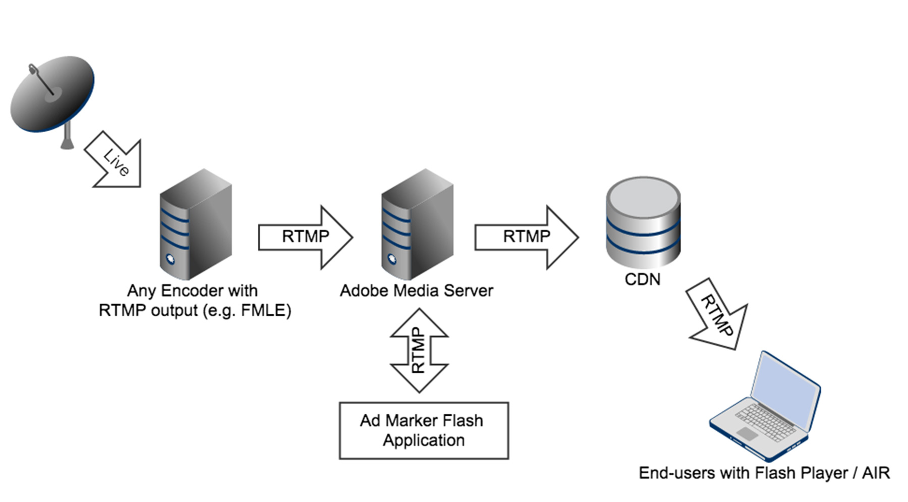 - Receive an RTMP stream from the encoder, and republish it to the CDN / Flash Player with the [multi-point publish](http://help.adobe.com/en_US/FlashMediaServer/3.5_Deving/WS5b3ccc516d4fbf351e63e3d11a0773d56e-7ffb.html) feature.