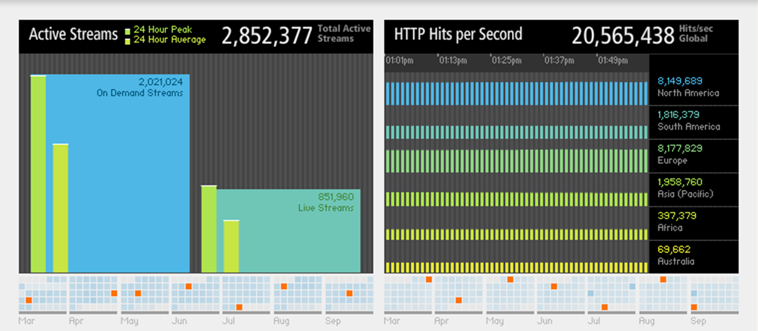 If you meanwhile look at the live stats at Akamai, one of the largest CDNs, their worldwide traffic with 850k concurrent live streams was only slightly higher than average, meaning the majority of traffic truly went through YouTube's infrastructure (or other CDNs).